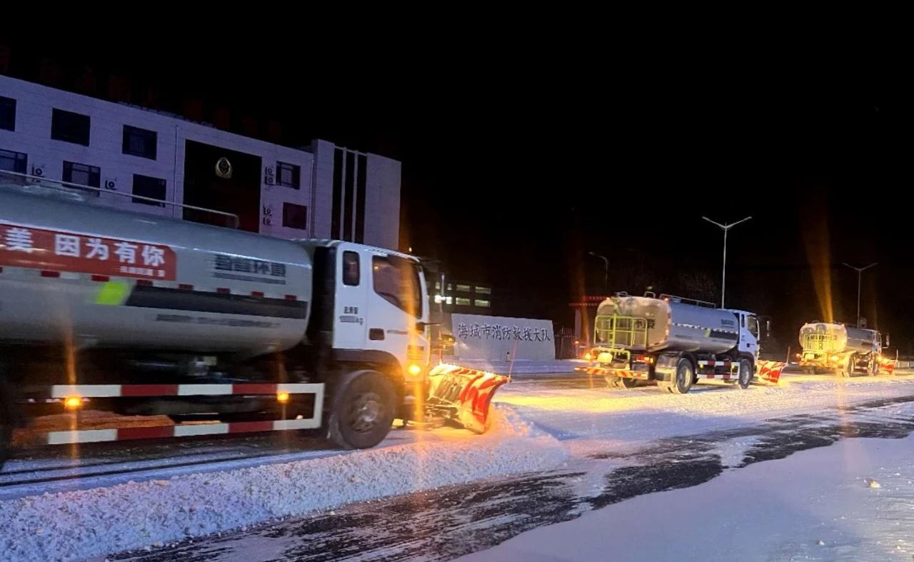 小雪、大雪、暴雪、雨夹雪,今年入冬,东北地区迎来了第一场大规模雨雪天气,并伴有寒潮、大风。为确保城市道路通行顺畅,保障城市生产和市民生活正常进行,YABO鸭脖环境东北中心辽宁抚顺、沈河、辽阳等项目、黑龙江桦川项目、内蒙古准格尔项目以雪为令,打响今年冬天首场“保民生、保畅通、保安全”的冰雪保卫战,吹响“抗冰除雪”集结号。