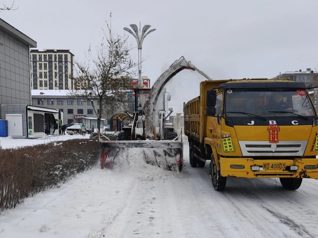 辽阳项目采取机械+人工组合作业的形式,对县内主次干道、人行道等反复清扫作业,并随时调配人员和机械车辆,做到清雪过程灵活机动,循环清理,确保雪下即清,雪停路净,第一时间保障市民出行安全。